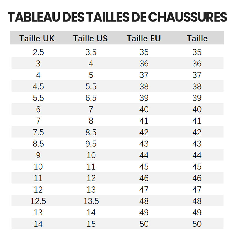 Tips: Denne størrelse er en standard UK størrelse. Du kan vælge den størrelse du normalt bruger. Hvis dine fødder er brede eller du har høj vrist, kan du vælge en større størrelse.
