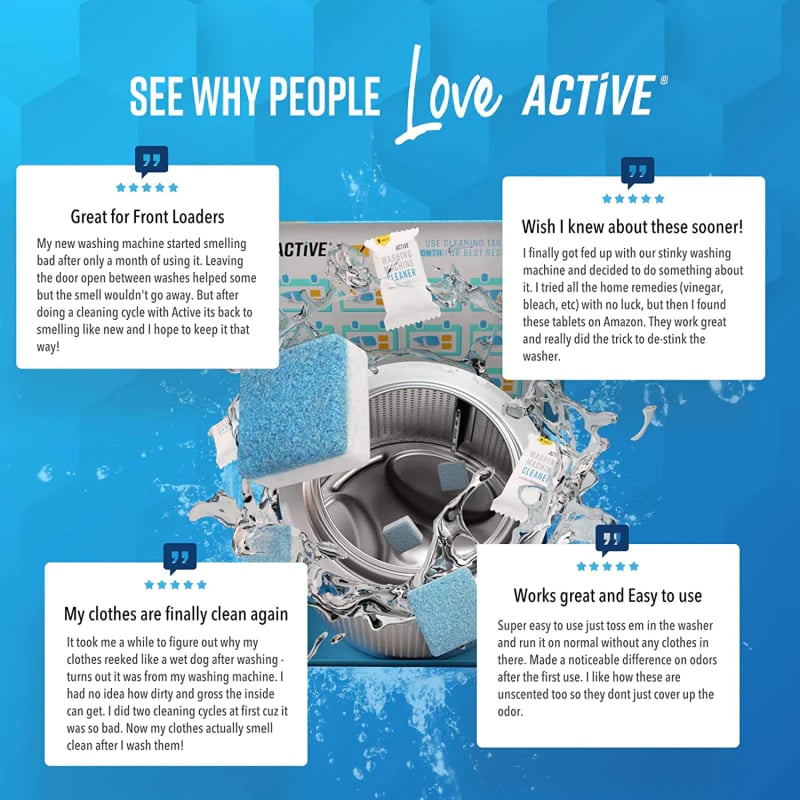 Vær ikke bekymret! Åbn en ny æra for sund vask med vores Freshtab™. Det er tid til at sige farvel til snavs & lugt fra din vaskemaskine for altid.