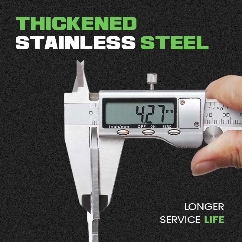 FORSTÆRKET RUSTFRI STÅL – Brugen af forstærket rustfrit stål øger vægten og styrken af stålet, hvilket gør skruenøglen modstandsdygtig over for deformation og nem at håndtere. Samtidig ruster den ikke let og er miljøvenlig.
