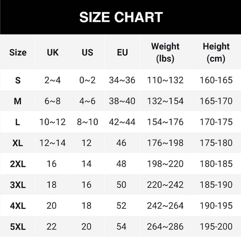 Størrelser: S, M, L, XL, 2XL, 3XL, 4XL, 5XL